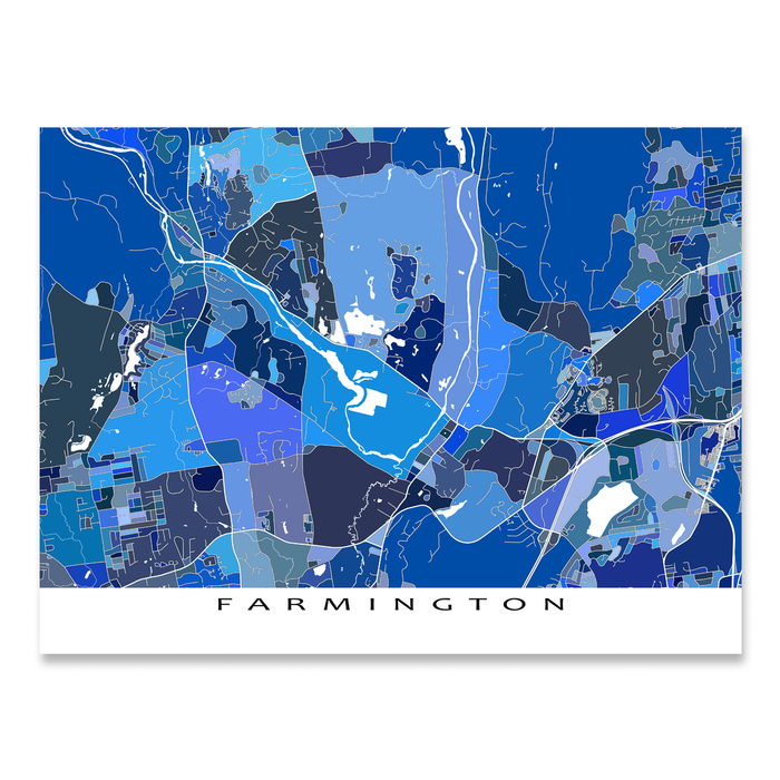 Farmington Connecticut Blue Geometric Wall Art Map Poster Print